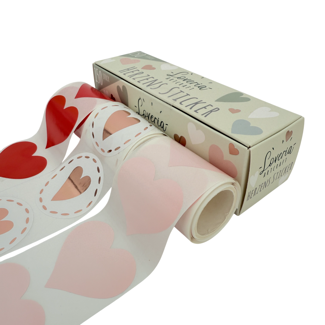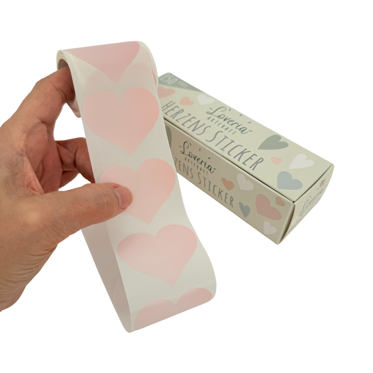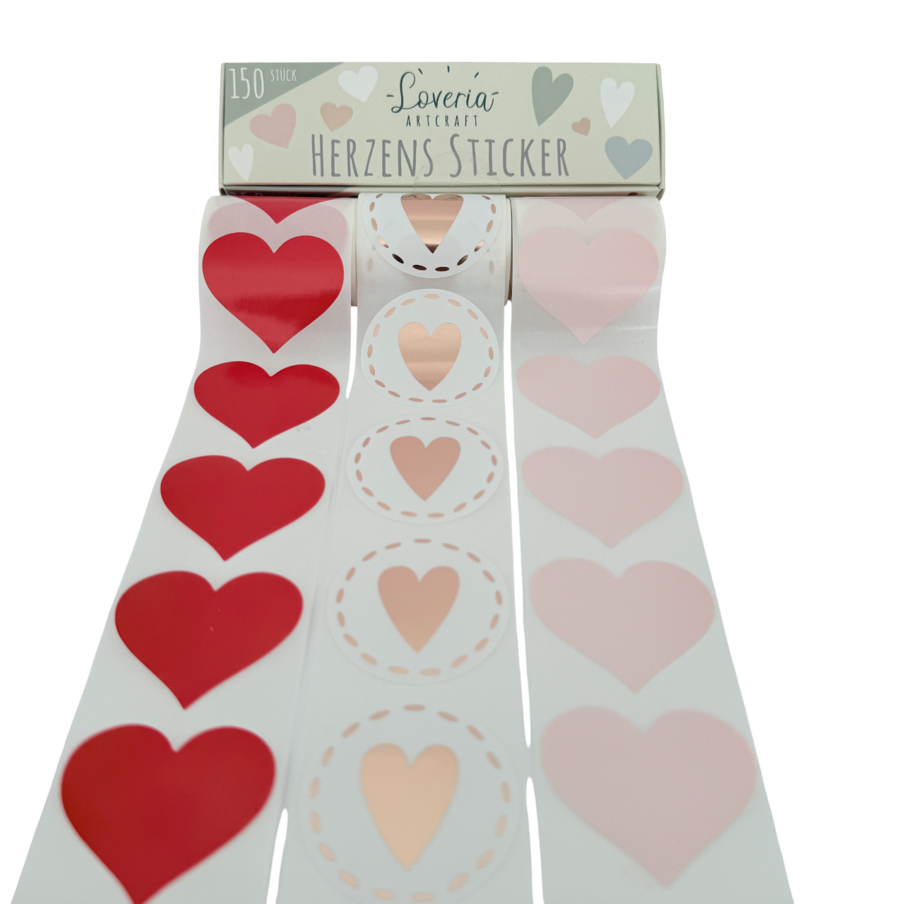 - 150 Sticker in Herzform und Kreisform mit Herzmotiv
