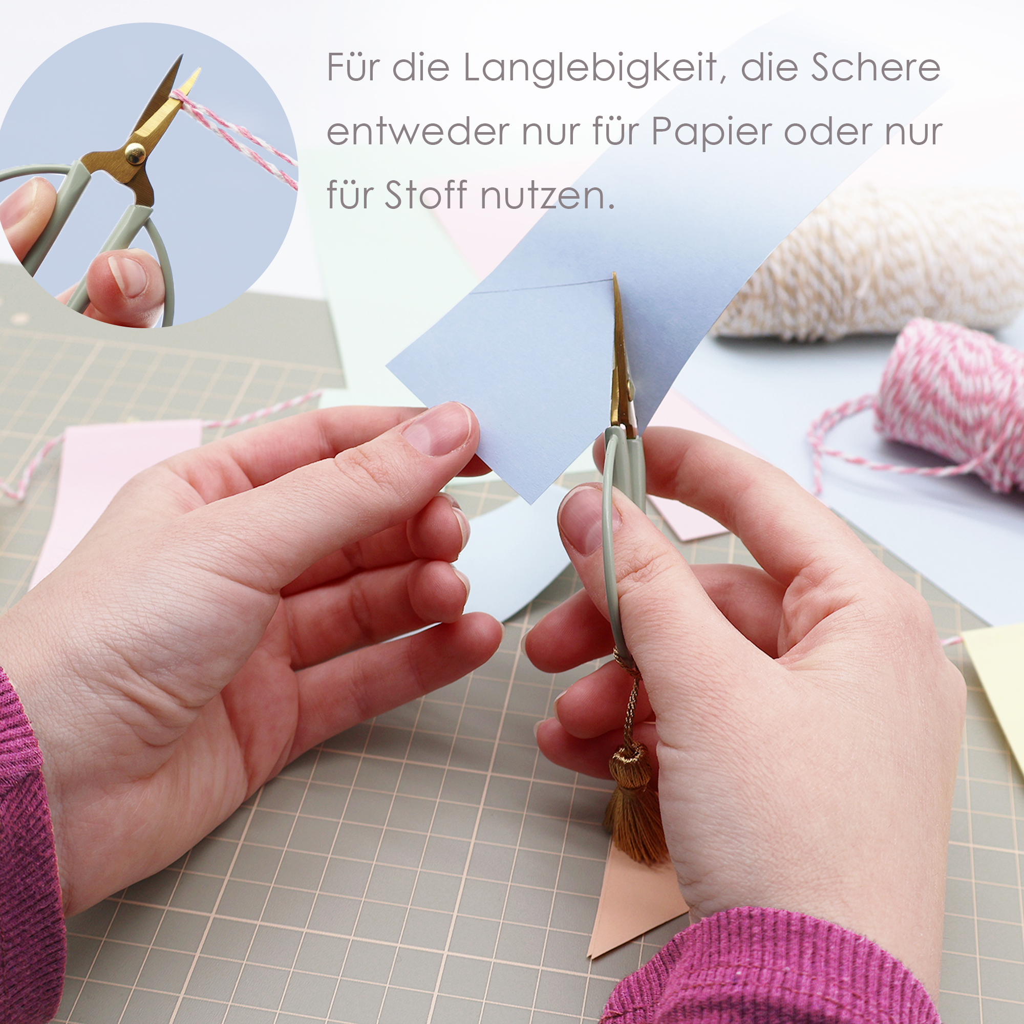 • Farbe Griff: salbeigrün, Farbe Klingen: gold