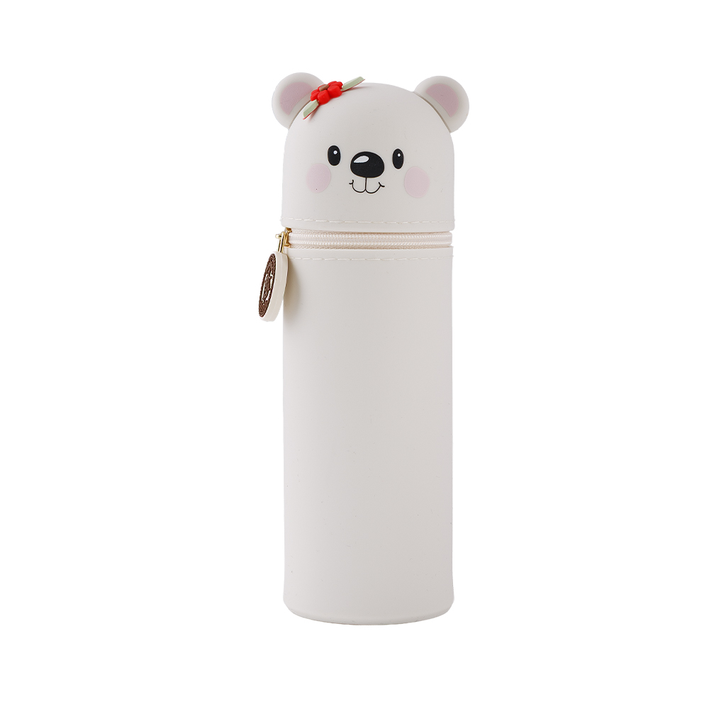 Entdecke unser lustiges Tiermäppchen und finde eine ideale Aufbewahrungsmöglichkeit für alle Deine Lieblingsstifte und Schreibutensilien. Hergestellt aus hochwertigem Silikon ist das Mäppchen strapazierfähig und abwaschbar und eignet sich somit besonders für einen langlebigen täglichen Gebrauch. Dank seines einzigartigen Designs kann es aufrecht stehen, was Dir jederzeit einen unkomplizierten und schnellen Zugang zu Deinen Stiften ermöglicht und Deinen Arbeitsplatz in der Schule oder Zuhause ordentlich hält. Ein stabiler Reißverschluss sorgt dafür, dass alle Schreibutensilien auch dann sicher aufbewahrt werden, wenn Dein Mäppchen im Schulranzen eine Pause einlegt. Zusätzlich hängt am Reißverschluss, befestigt an einem kleinen Kettchen, ein zauberhafter Herzanhänger. Dieser ist auf der einen Seite beschriftet mit „Ich bin Marzy“, auf der anderen steht „Pass gut auf mich auf! Ich gehöre zu: ___“, hier kann der stolze Besitzer seinen Namen eintragen. So wird das Mäppchen schnell zum persönlichen Lieblingsstück und lässt sich im Klassenzimmer, unterwegs oder zu Hause immer leicht wiederfinden! Mit seinem niedlichen Affen-Motiv ist dieses Mäppchen nicht nur funktional, sondern auch ein toller Blickfang für Schüler jeden Alters. Das Tiermäppchen ist ein ideales Geschenk für alle kleinen und großen Schulkinder! Bringe Funktionalität und eine große Portion Spaß in Deinen Schulalltag mit dem lustigen Eisbär-Mäppchen aus Silikon!