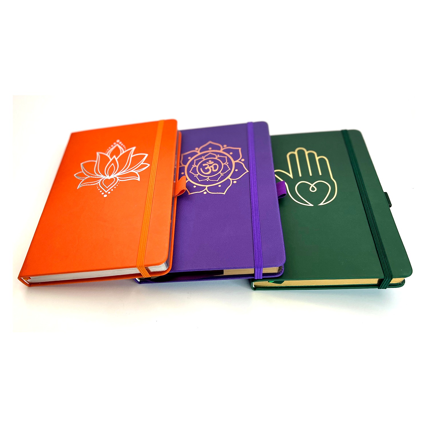 • 1 Yoga Notizbuch, Coverfarbe orange mit folierter Prägung